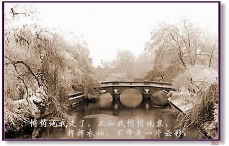 悄悄的我走了,正如我悄悄的來, 我揮一揮衣袖,不帶走一片雲彩。